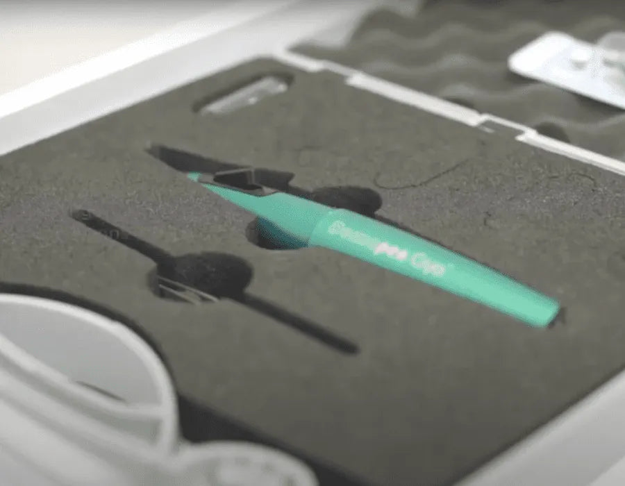Dermapen™ Cryotherapy delivers a fine, targeted, ultra-cold mist (temperature -89 degrees Celsius) of nitrous oxide gas at a high pressure to effortlessly and painlessly treat a variety of unwanted skin lesions. The pinpoint accuracy of a cryo pen provides greater precision and comfort (compared with liquid nitrogen therapy), creating increased treatment versatility and results. Treatments are fast, comfortable and effective for imperfections found on facial and body skin, making it the perfect treatment for freezing warts and skin tags. The longer the mist is sprayed onto a lesion with the cryo pen, the deeper the absorption and active penetration. Multi-treatment tips enable versatile precision to treat a variety of lesion sizes and depths. Unlike traditional Cryotherapy, the tip does not directly touch the lesion. This enables far greater comfort, accelerated healing and a more precise delivery system. The nitrous oxide treats damaged tissue by freezing inter cellular fluid, helping to speed up the removal of skin tags, solar lentigo and other skin concerns.
